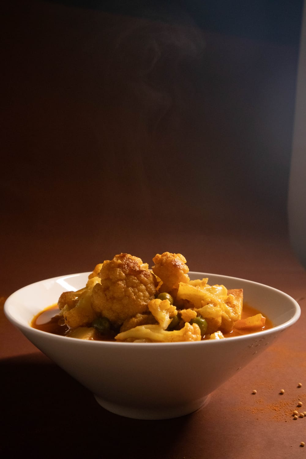 Cauliflower, potatoes and Green peas in a lightly spiced gravy.