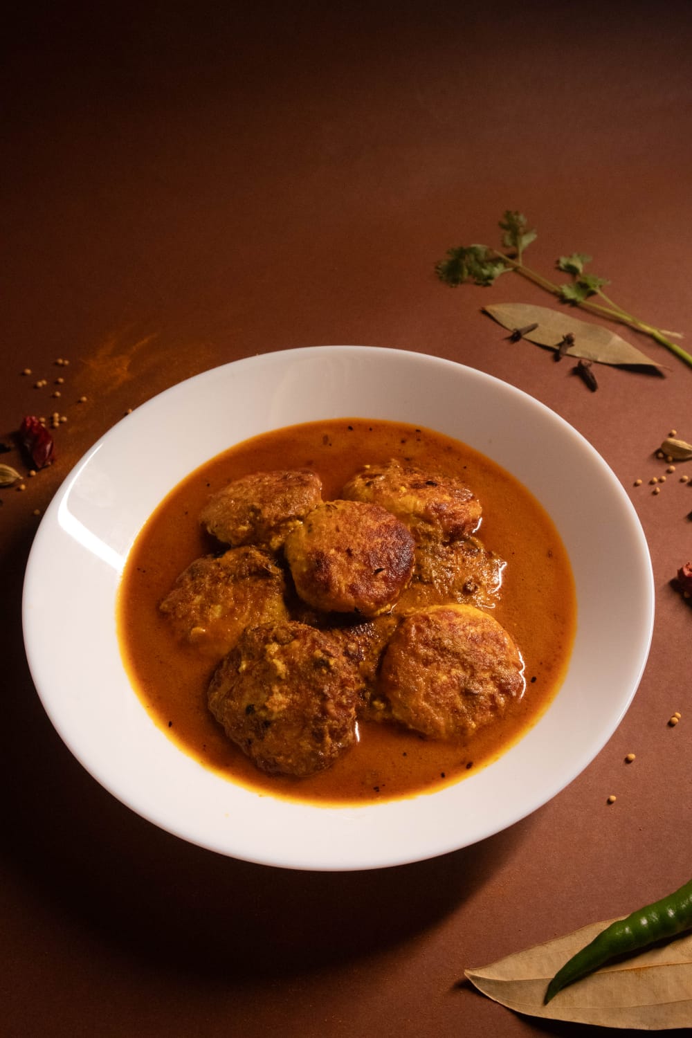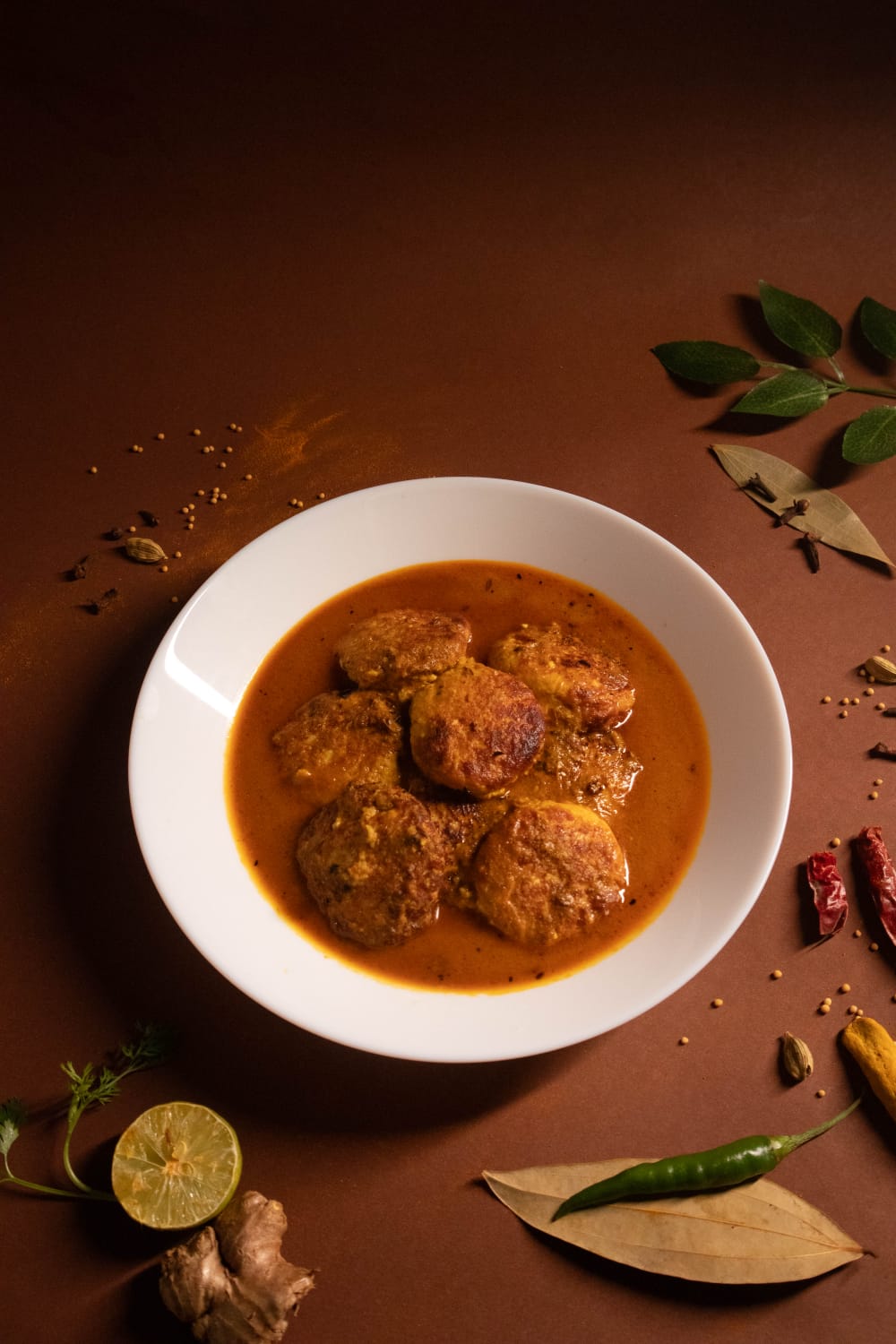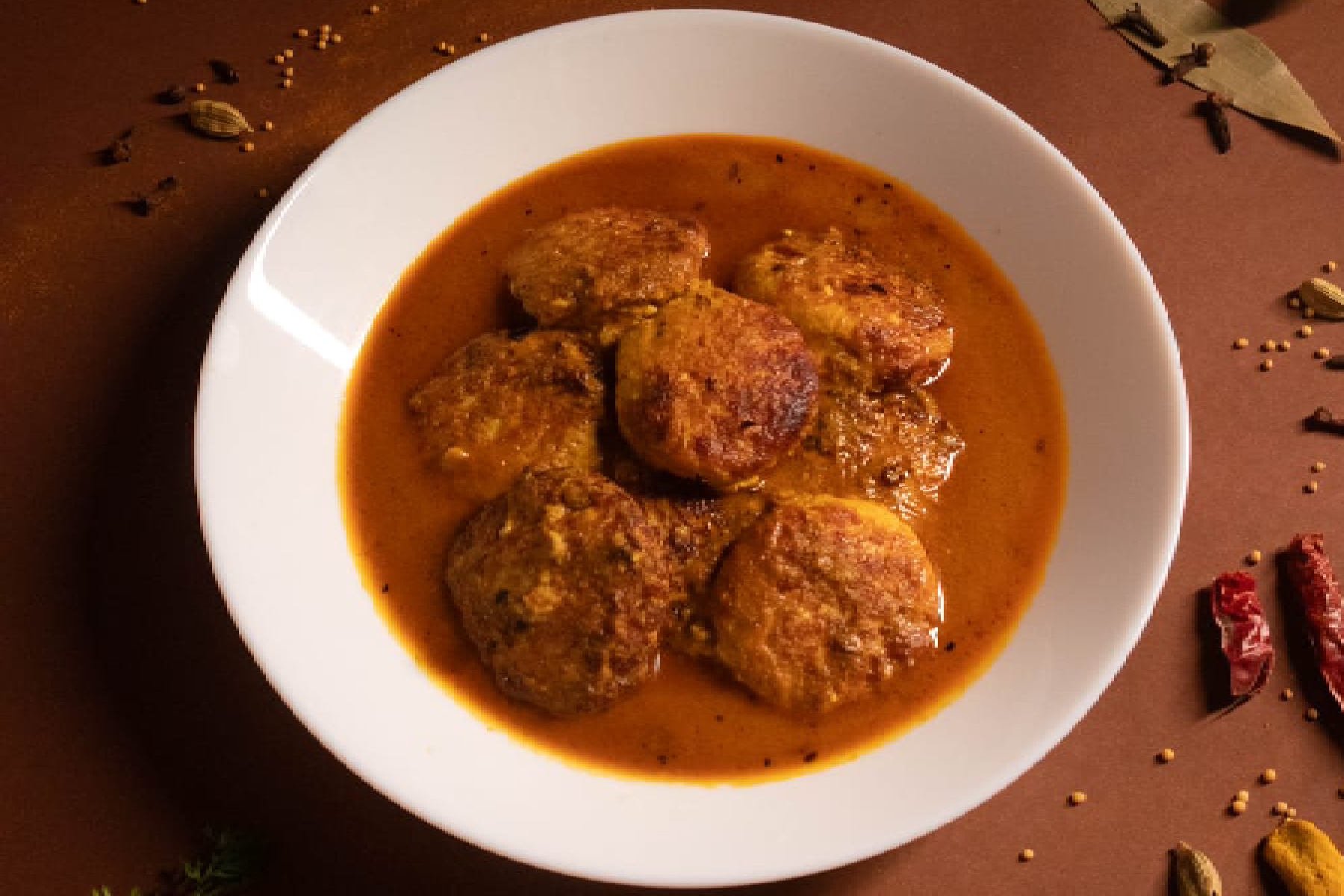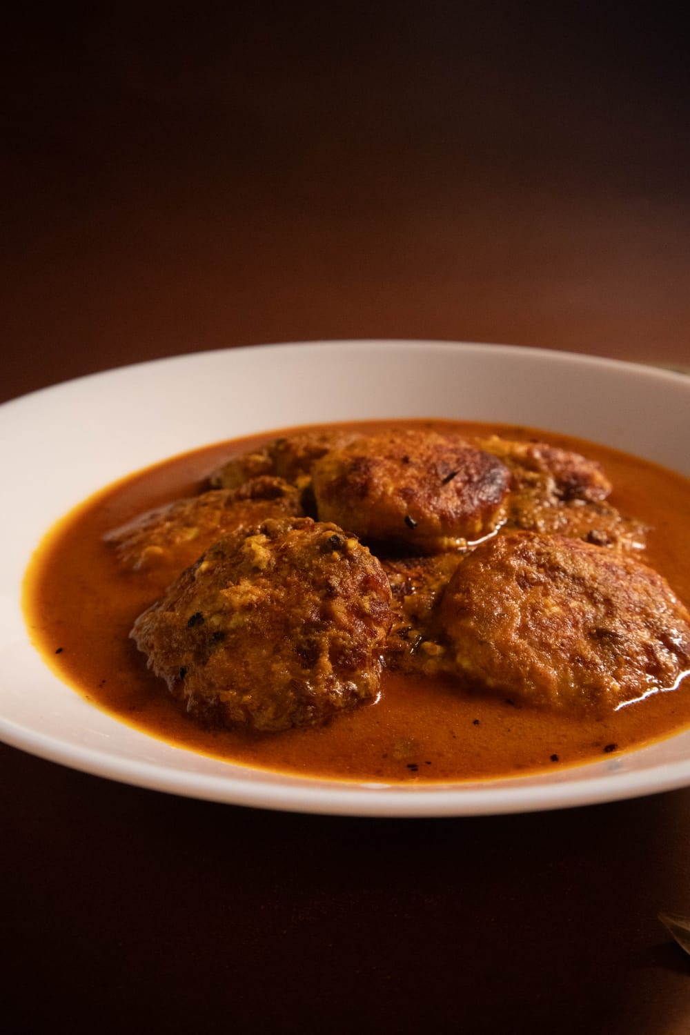 Malai Paneer kofta in lightly spiced gravy. It’s a no onion no garlic dish.