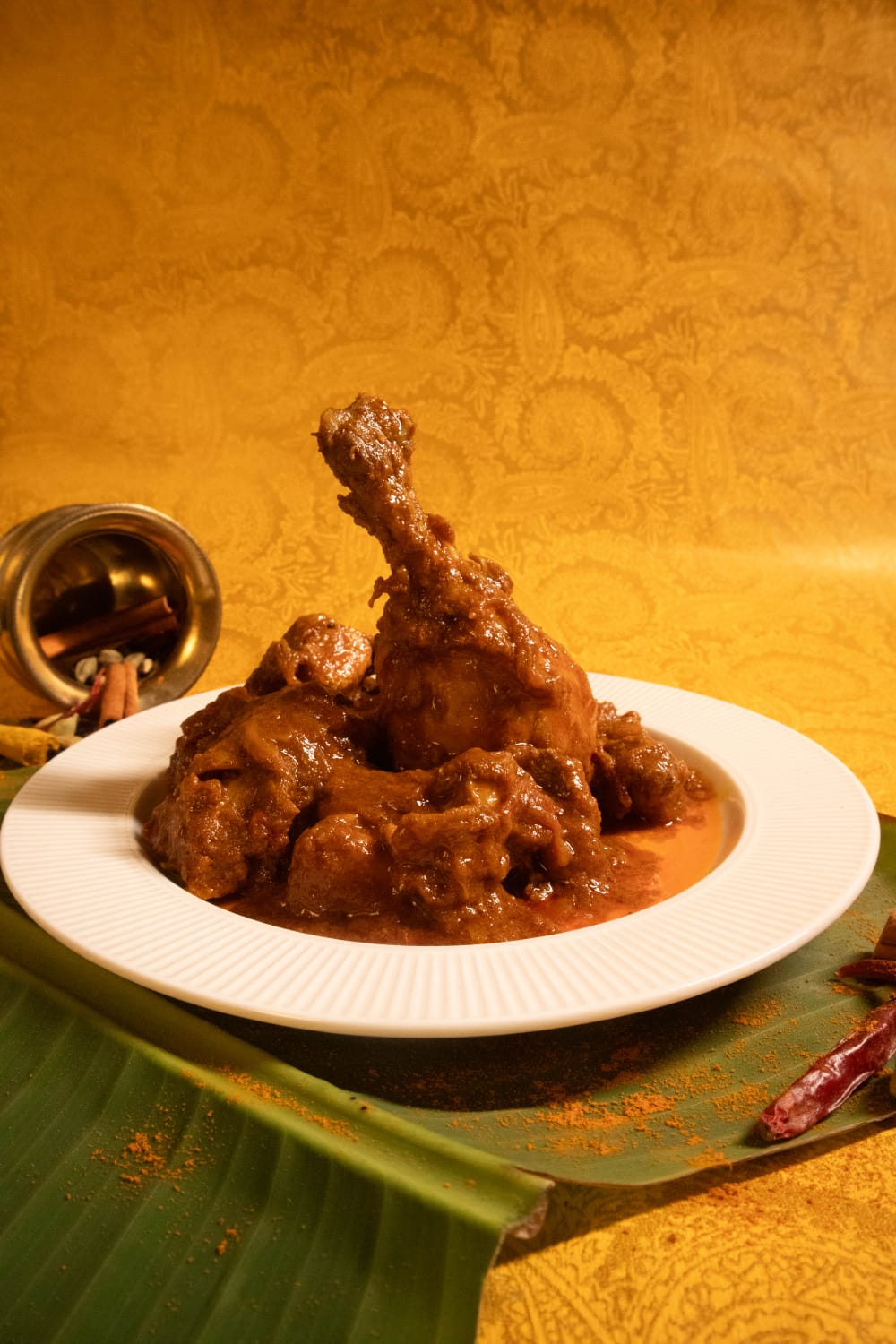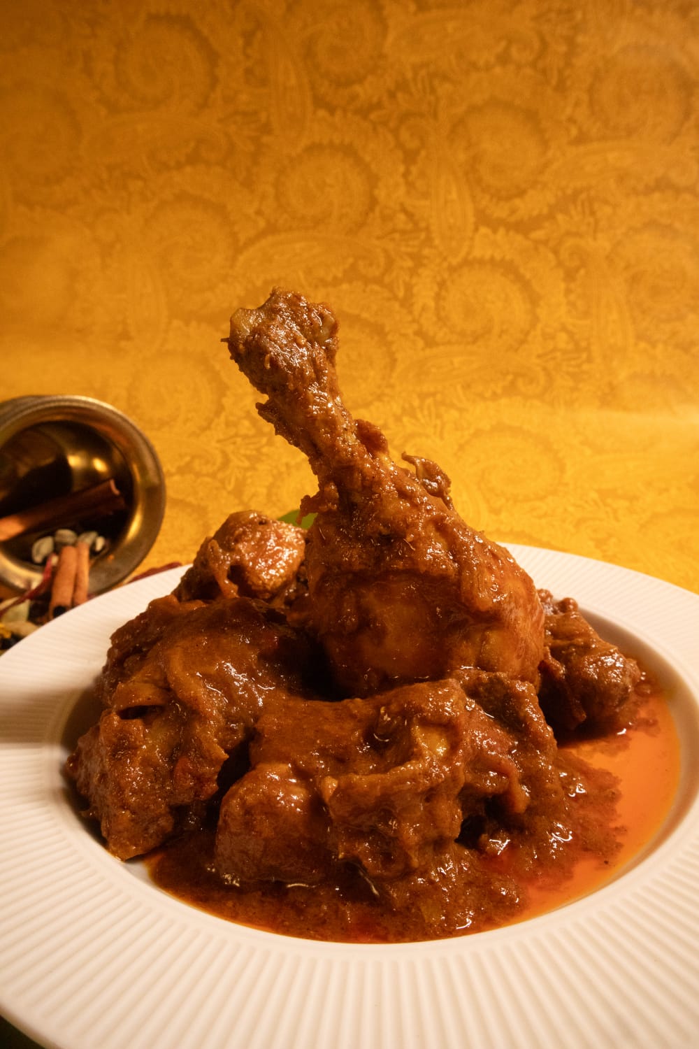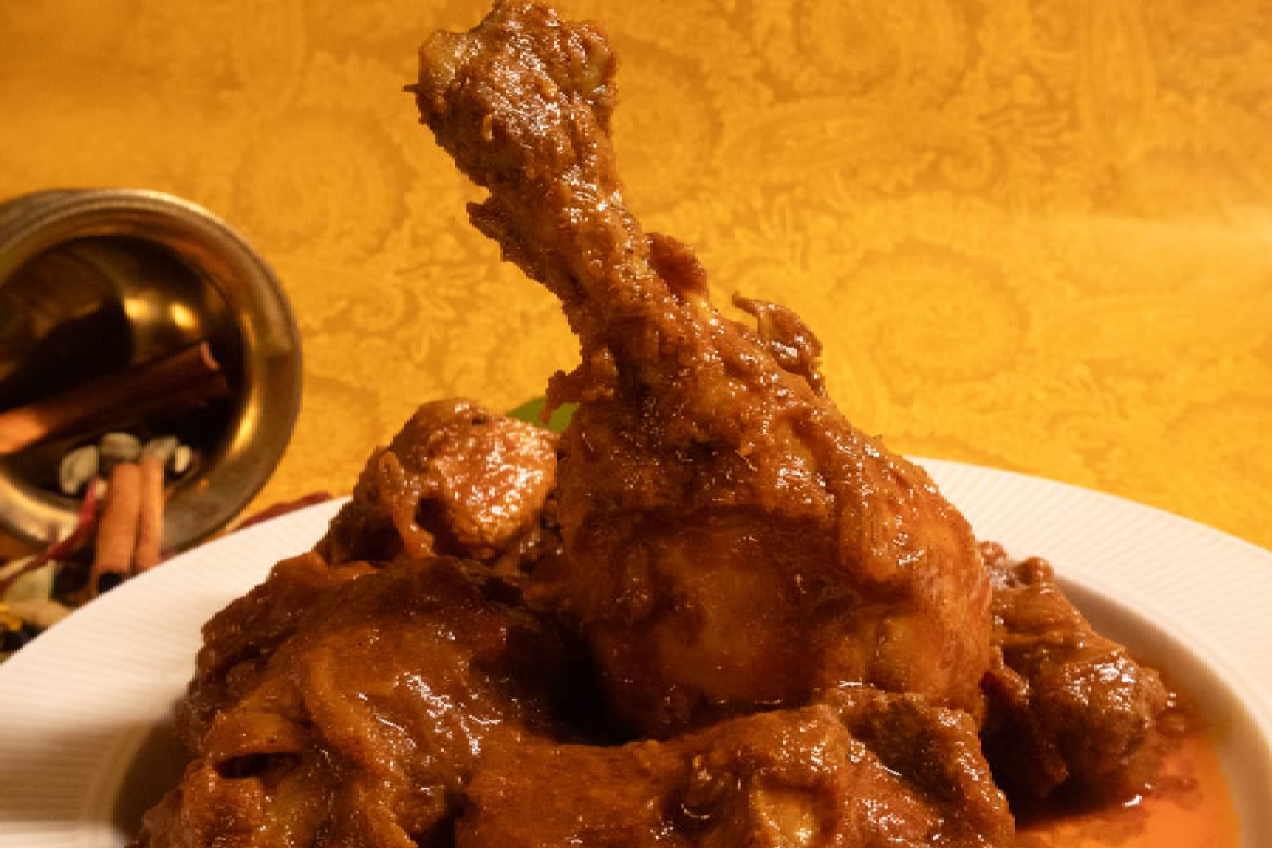 Semi dry chicken curry, traditional Bengali style made with homemade aromatics spices